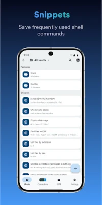 · Save your favorite and frequently used commands and shell scripts to execute them with a tap instead of typing.